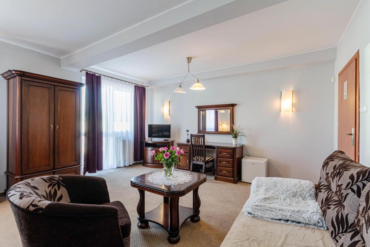 Pokój trzyosobowy. The spacious triple room features a wardrobe, a carpeted floor, as well as a private bathroom boasting a shower and a hairdryer. This triple room provides heating and a flat-screen TV. Pokój Trzyosobowy - 3 osobowy. Powierzchnia pokoju ok.: 36 mkw. ;