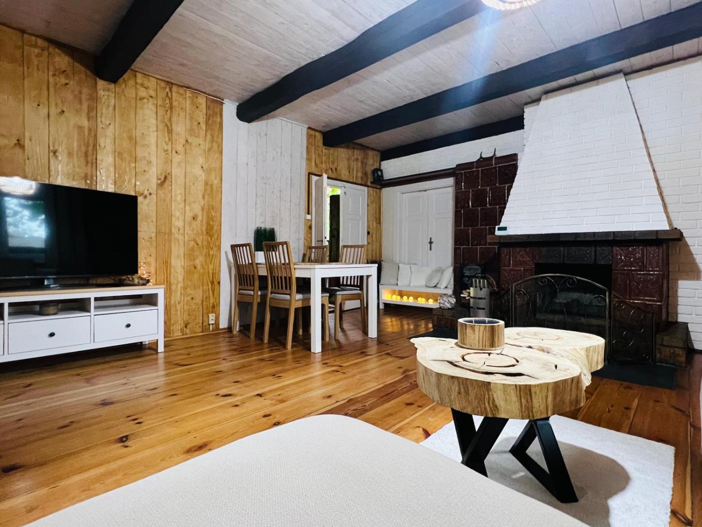 Dom z 2 sypialniami. The fireplace is a top feature of this holiday home. The well-equipped kitchen has a stovetop, a refrigerator, a dishwasher and kitchenware. The holiday home features a washing machine, a private entrance, a tea and coffee maker as well as a terrace with garden views. The unit has 3 beds. Dom wakacyjny - 6 osobowy. Powierzchnia pokoju ok.: 100 mkw.